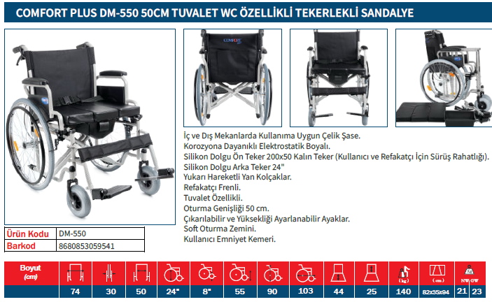 Comfort Plus DM-550 50cm Tuvalet WC Özellikli Tekerlekli Sandalye