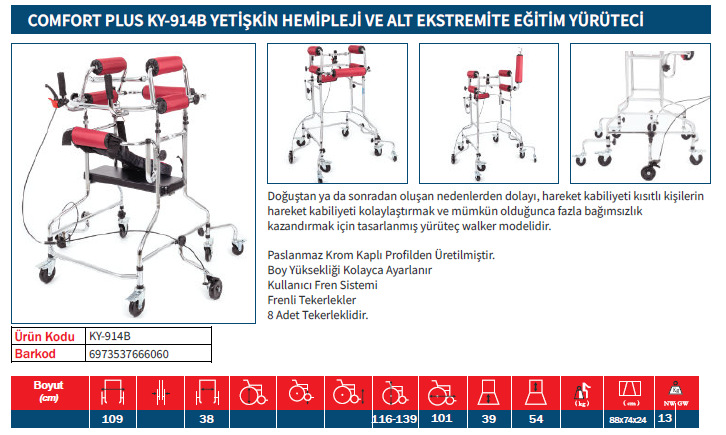 Comfort Plus KY-914B Yetişkin Hemipleji ve Alt Ekstremite Eğitim Yürüteçi