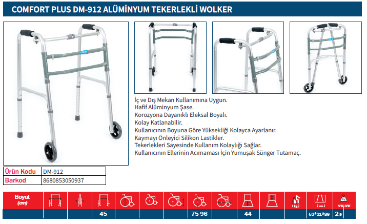 Comfort Plus KY912L Tekerlekli Alüminyum Walker İthal