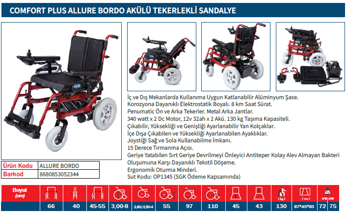 Comfort Plus Allure Akülü Tekerlekli Sandalye Bordo
