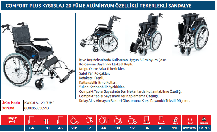 Comfort Plus KY863LAJ-A20 Kırmızı Alüminyum Özellikli Tekerlekli Sandalye