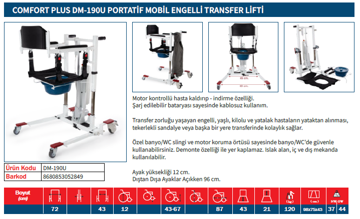 Comfort Plus DM-190U NEW Portatif Mobil Lift Hasta Transfer Lifti