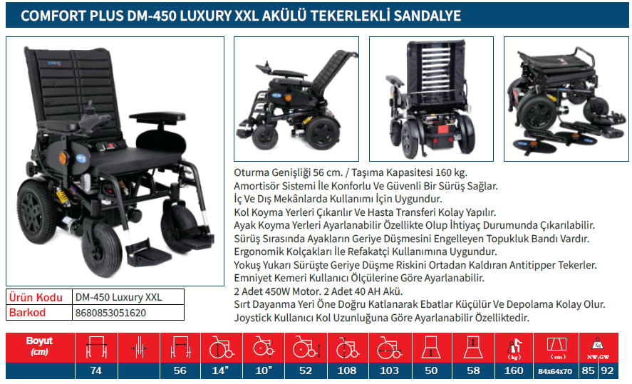 Comfort Plus DM-450 Luxury XXL Akülü Tekerlekli Sandalye