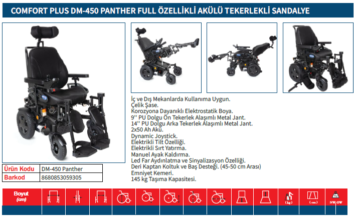 Comfort Plus DM-450 Panther Full Özellikli Akülü Tekerlekli Sandalye