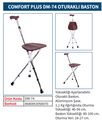 Comfort Plus DM-74 Oturaklı Baston ( Yüksekliği Ayarlanır )