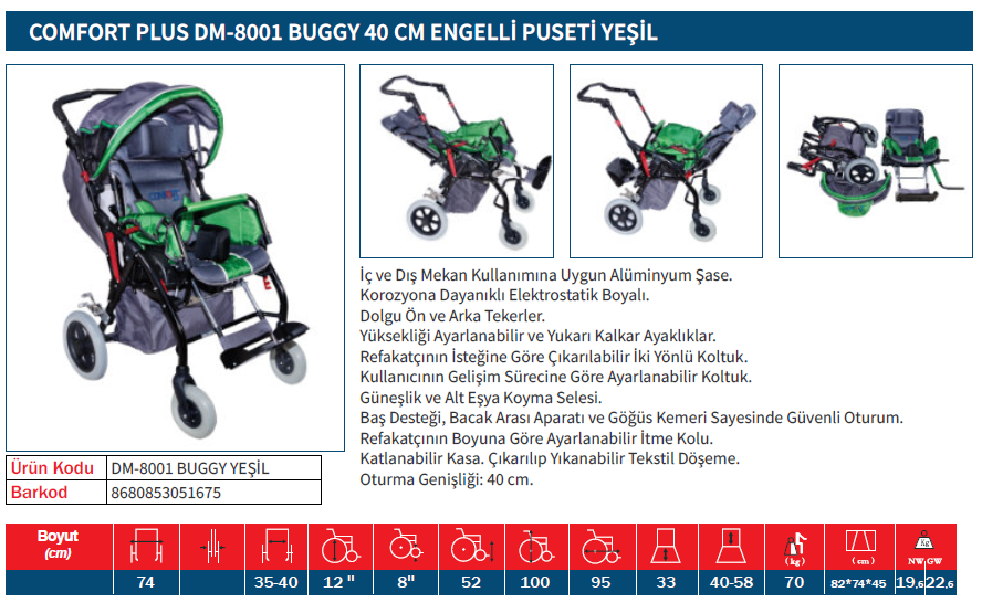 Comfort Plus DM-8001 BUGGY 40 cm Yeşil Engelli Puseit