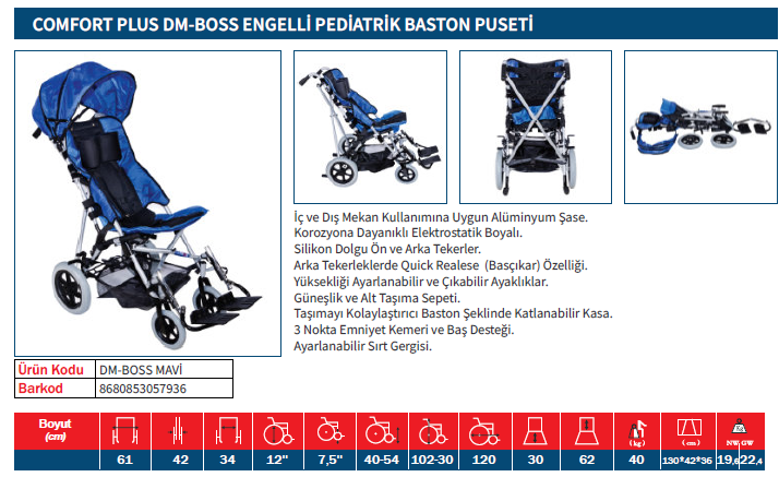 Comfort Plus DM-BOSS Mavi Engelli Pediatrik Puset