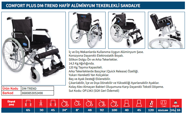 Comfort Plus DM-Trend NEW Hafif Alüminyum Tekerlekli Sandalye