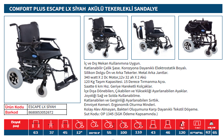 Comfort Plus Escape LX Akülü Tekerlekli Sandalye