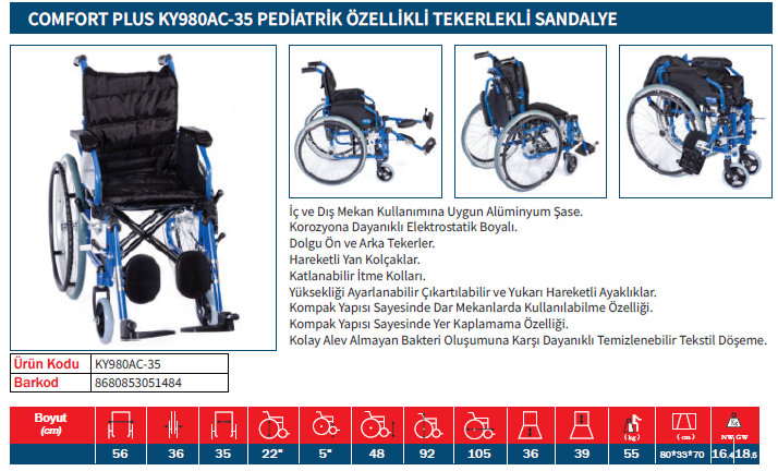 Comfort Plus KY980AC-35 Özellikli Çocuk Tekerlekli Sandalye