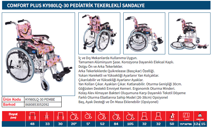 Comfort Plus KY980LQ-30 Alüminyum Pediatrik Özellikli Tekerlekli Sandalye
