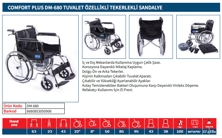 Comfort Plus DM-680 Tuvalet Özellikli Tekerlekli Sandalye