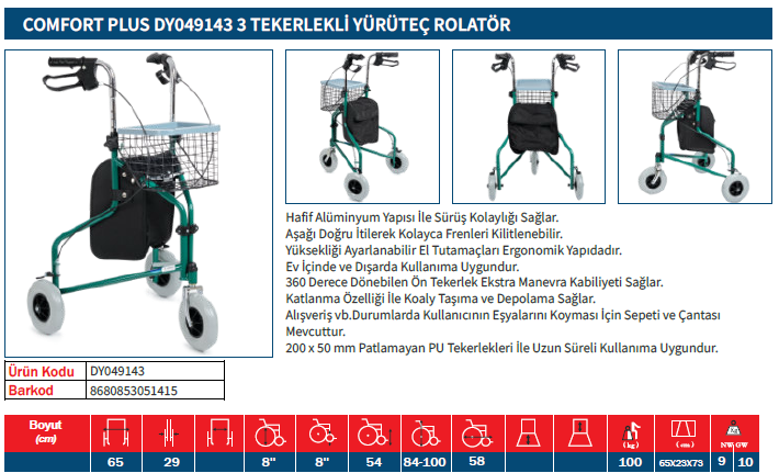 Comfort Plus DY049143 3 Tekerlekli Yürüteç Rolatör