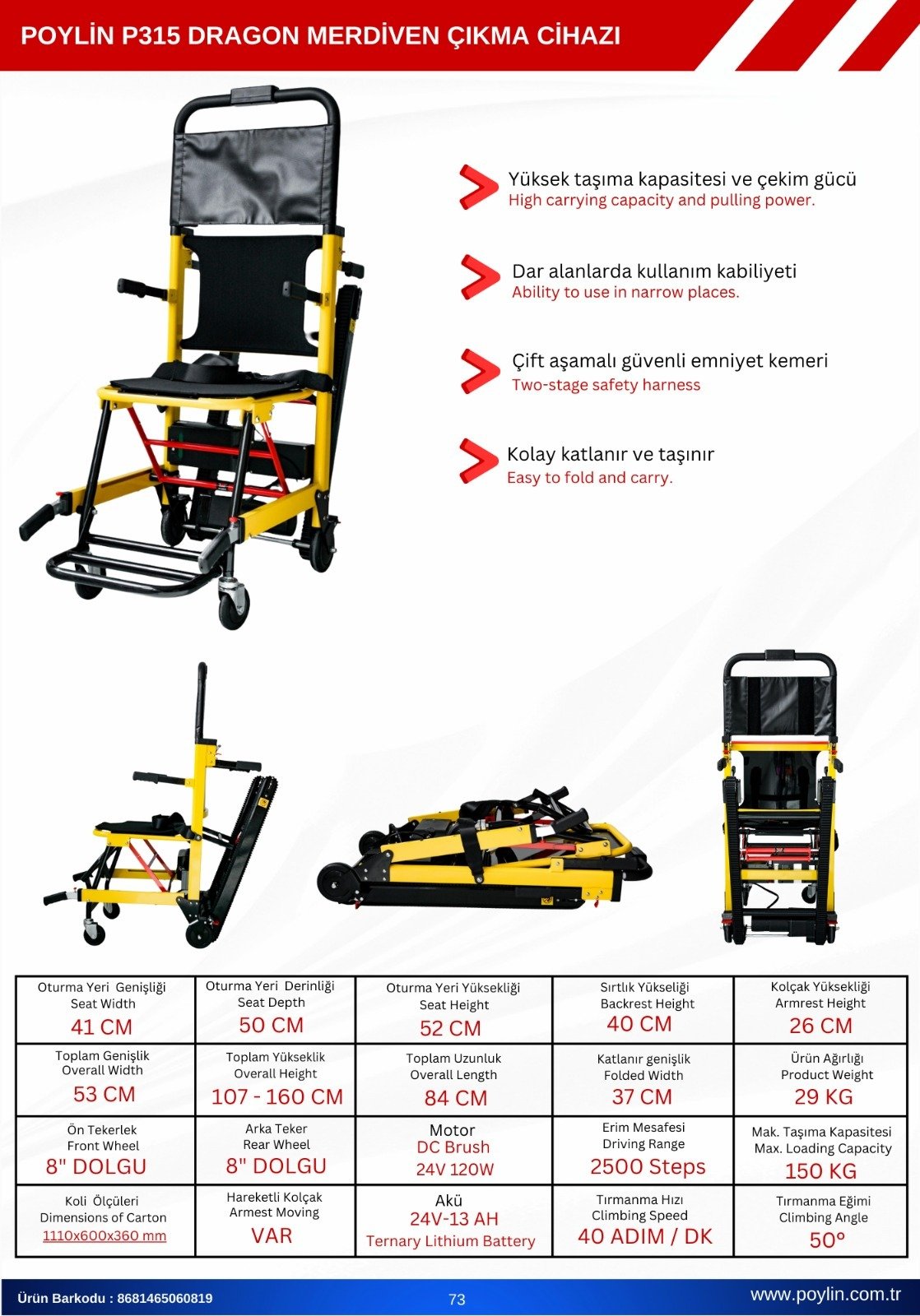 Poylin P315 Dragon Engelli Merdiven İnme-Çıkma Sandalyesi
